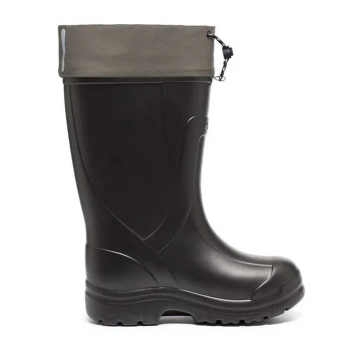 Внешняя часть сапог выполнена из легкого, водонепроницаемого и эластичного материала ЭВА, а внутренний сменный вкладыш — из многослойного теплого полотна, поэтому сапоги надежно защищают тело человека от влаги и холода. В них комфортно и ходить, и сидеть.