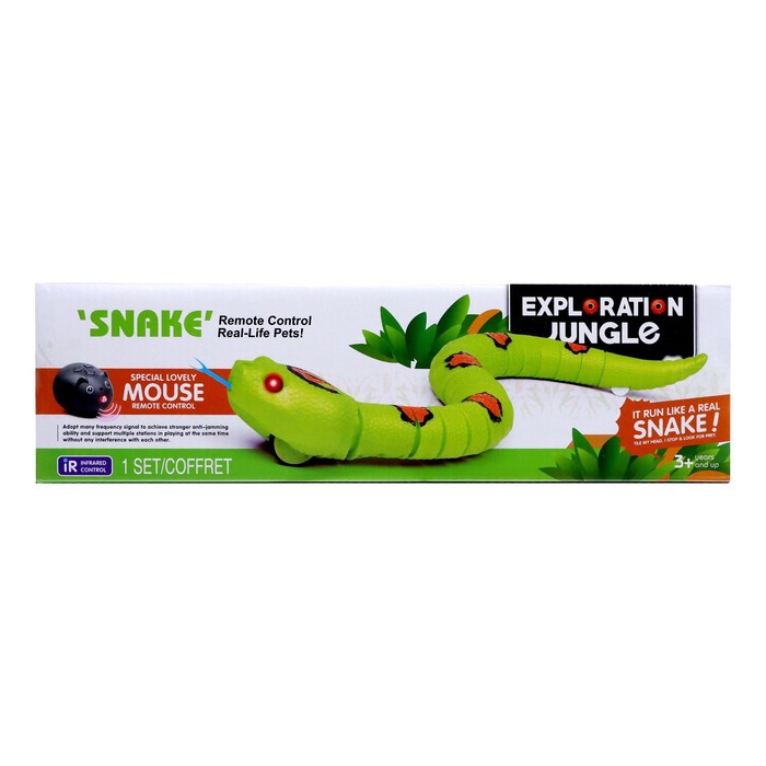 Управляемая змея станет отличным подарком для ребёнка старше 3 лет. Игрушка выполнена в ярко-зелёном цвете, что идеально подойдёт для тематических игр про джунгли или Новый год. Она не только развлечёт малыша, но и поможет развить реакцию и моторику.