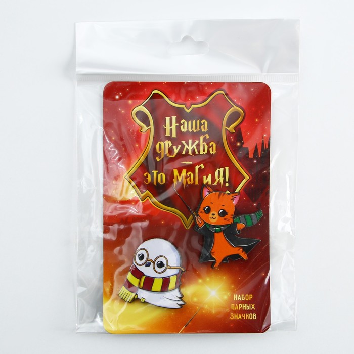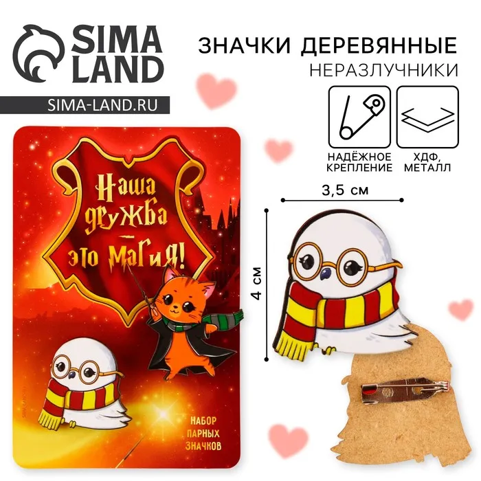 Значки деревянные, неразлучники «Наша дружба это магия», 2 шт., 8 х 12 см.