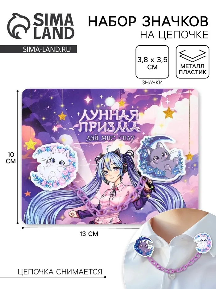 Значки на цепочке «Лунная призма», 13×10 см, набор 2 шт. — Характеристики