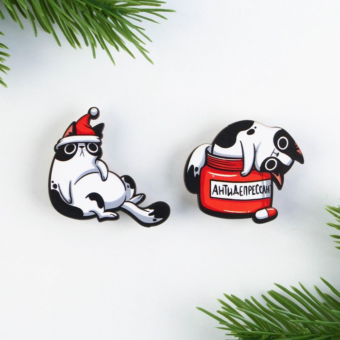 Значки парные новогодние «У деда мороза попрошу...», набор 2 шт — Характеристики