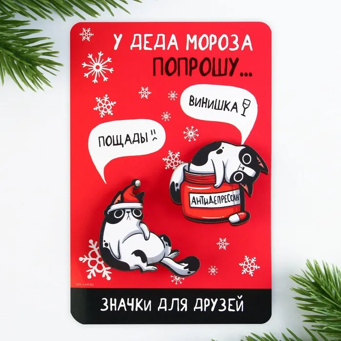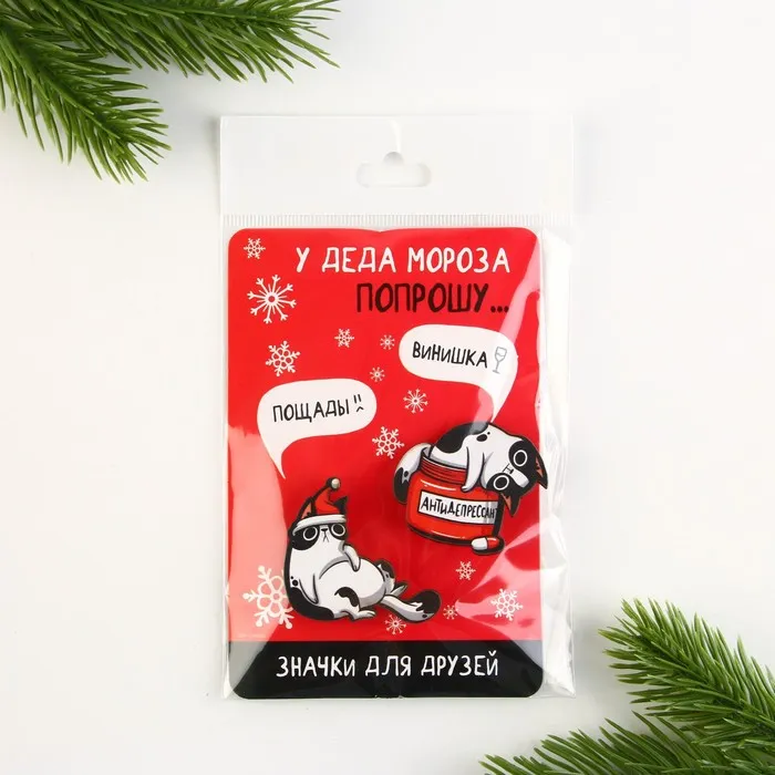 Значки парные новогодние «У деда мороза попрошу...», набор 2 шт — Характеристики