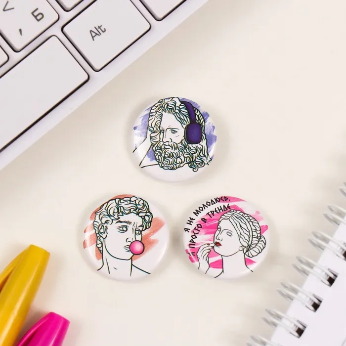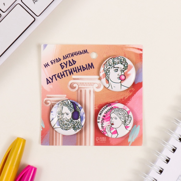 Значки закатные набор 3 шт d=25 мм "Античность" 7х7 см — Характеристики