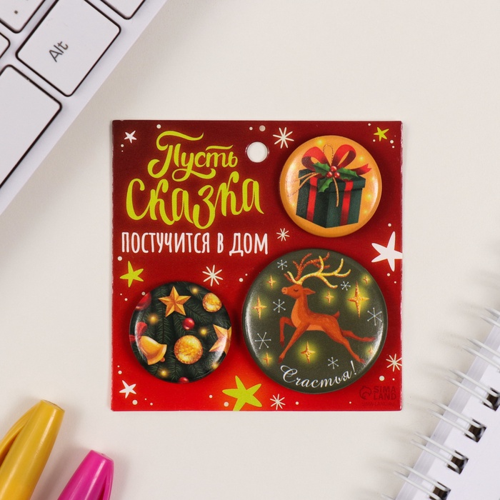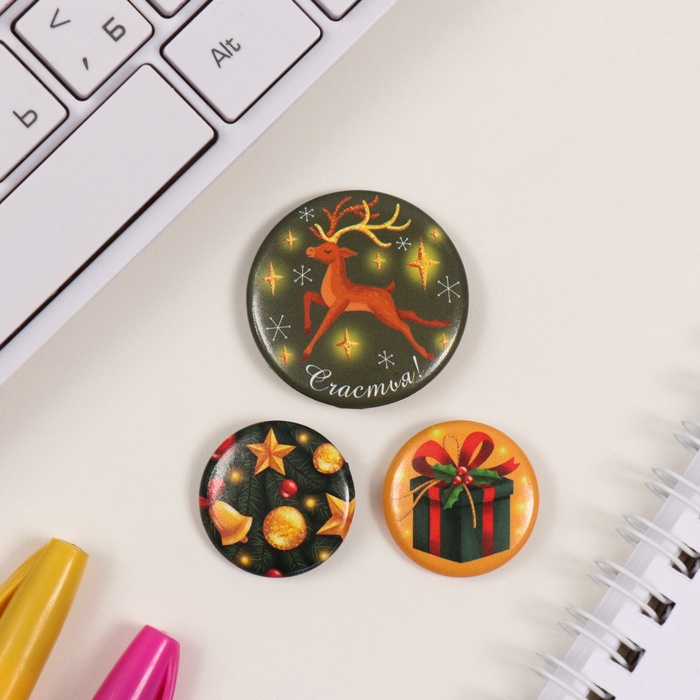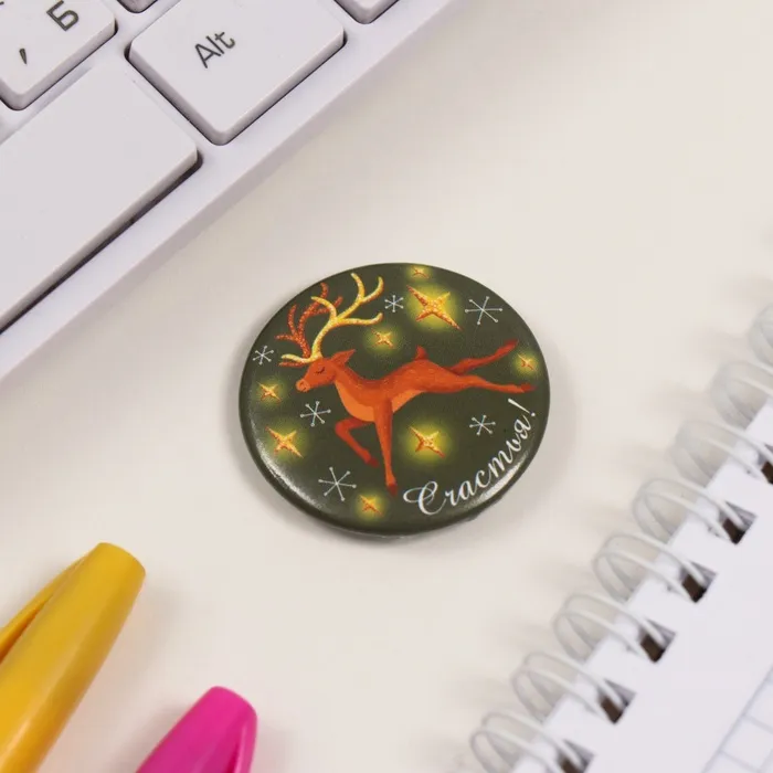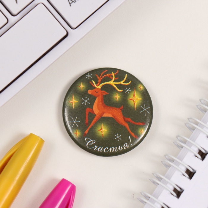 Значки закатные набор 3 шт d=25 мм d=35 мм "Олень с золотыми рогами" 7х7 см — Характеристики