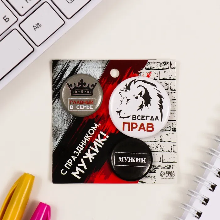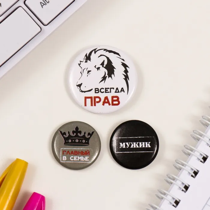 Значки закатные набор 3 шт d=25 мм d=35 мм "Всегда прав" 7х7 см — Характеристики