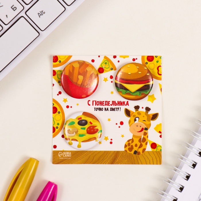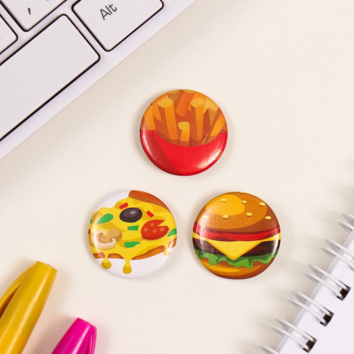 Значки закатные набор 3 шт d=25 мм "Фастфуд" 7х7 см — Характеристики