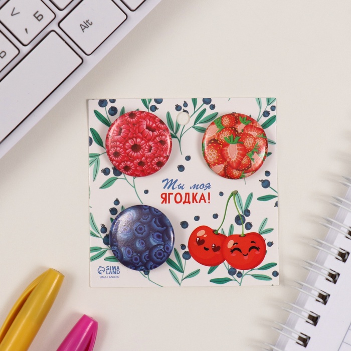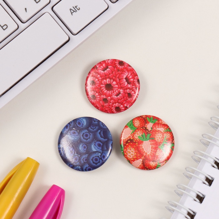 Значки закатные набор 3 шт d=25 мм "Ягоды" 7х7 см — Характеристики