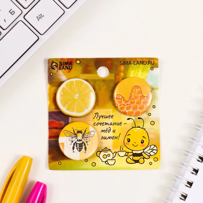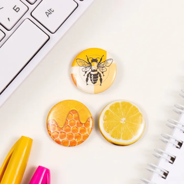 Значки закатные набор 3 шт d=25 мм "Мёд и лимоны" 7х7 см — Характеристики