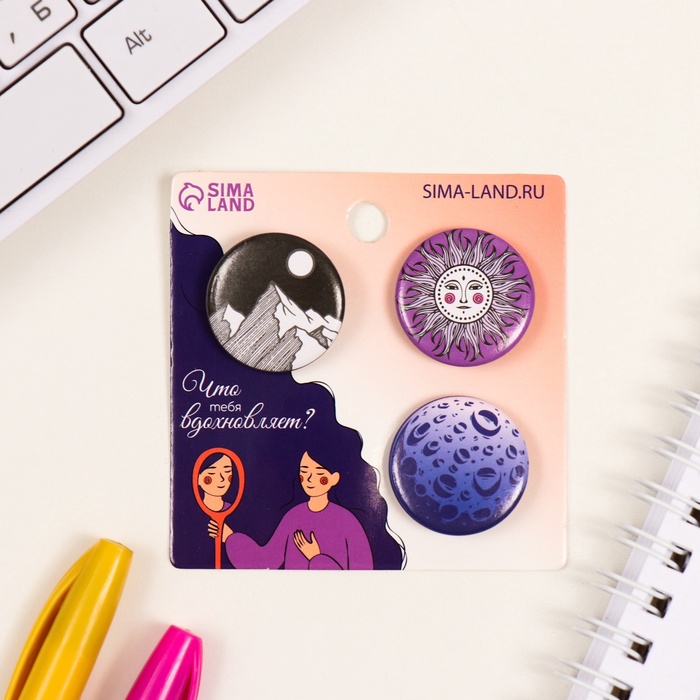 Значки закатные набор 3 шт d=25 мм "Моя вселенная" 7х7 см — Характеристики