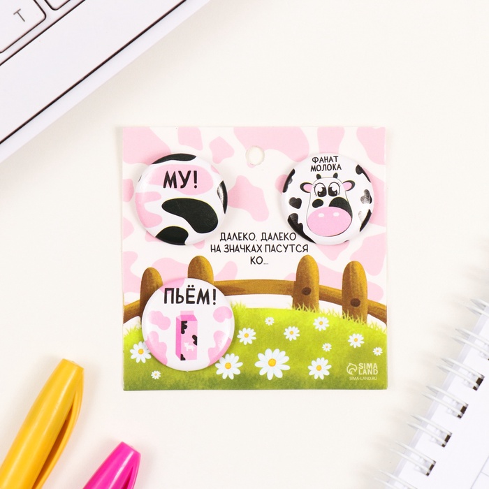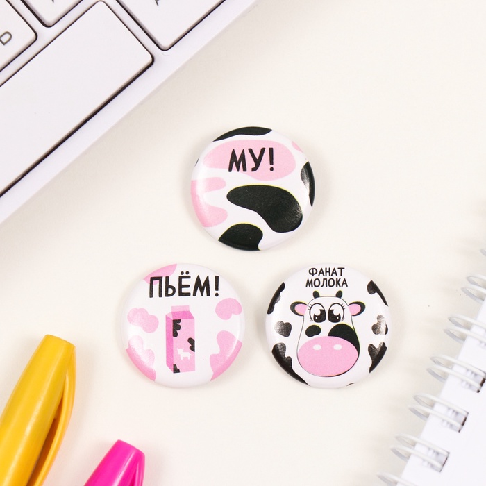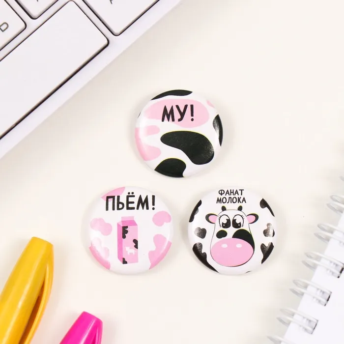 Значки закатные набор 3 шт d=25 мм "Молоко" 7х7 см — Характеристики