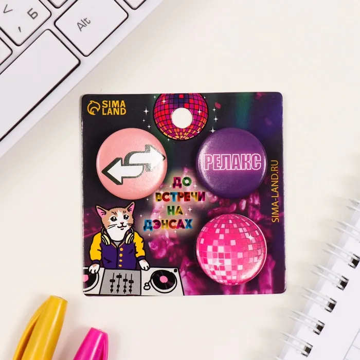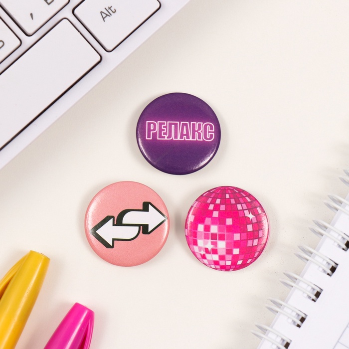 Значки закатные набор 3 шт d=25 мм "Релакс" 7х7 см — Характеристики