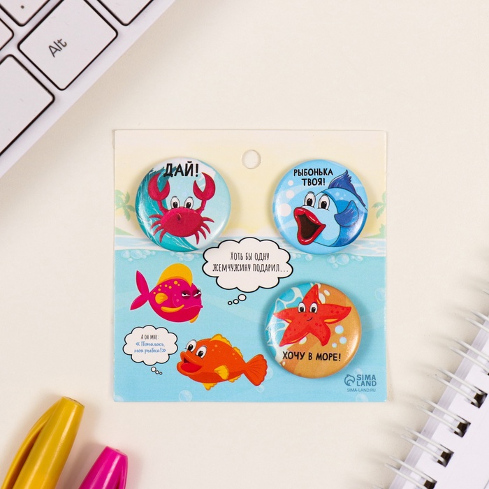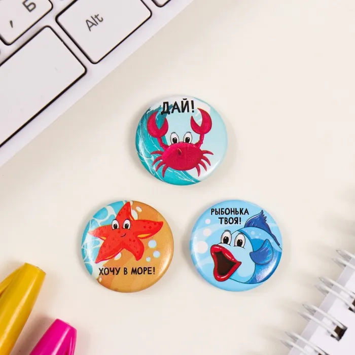 Значки закатные набор 3 шт d=25 мм "Рыбки" 7х7 см — Характеристики