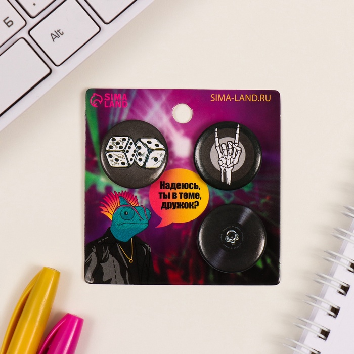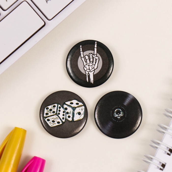 Значки закатные набор 3 шт d=25 мм "Скелет" 7х7 см — Характеристики