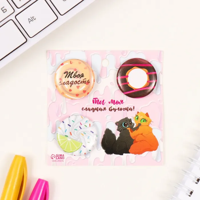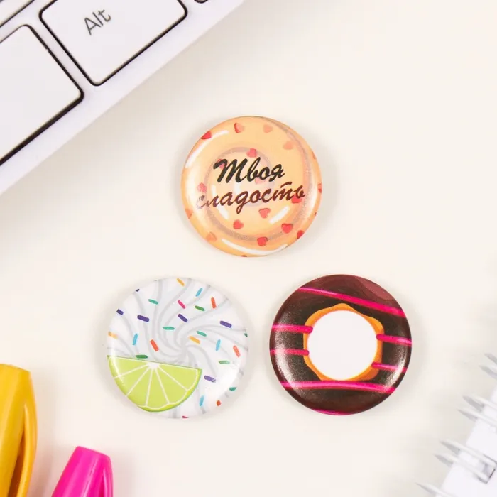 Значки закатные набор 3 шт d=25 мм "Сладости" 7х7 см — Характеристики