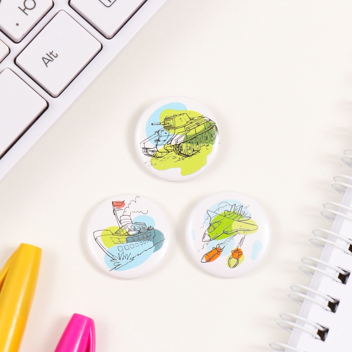 Значки закатные набор 3 шт d=25 мм "Танк" 7х7 см — Характеристики