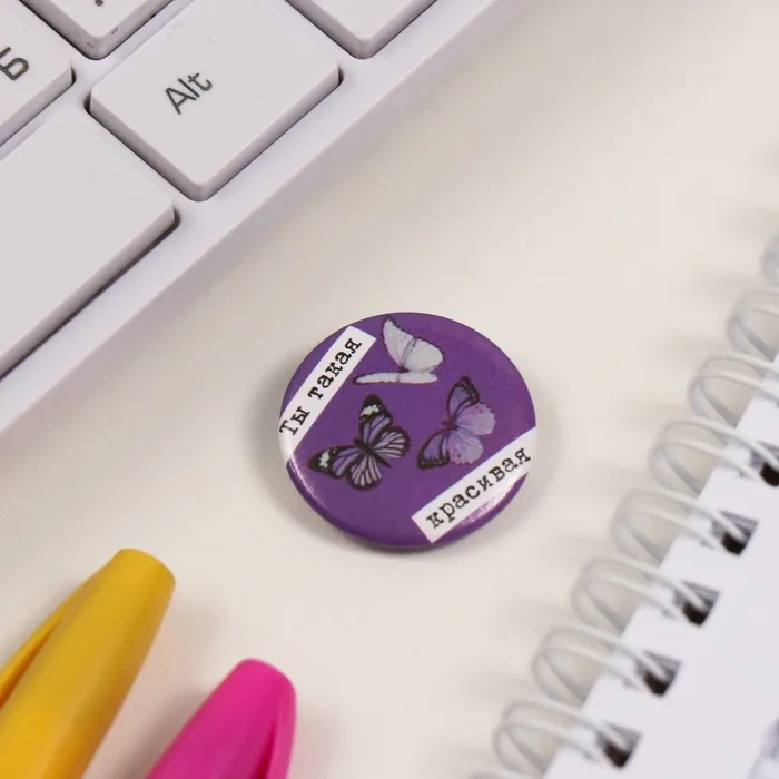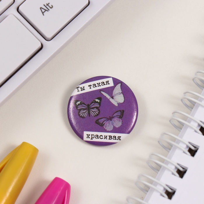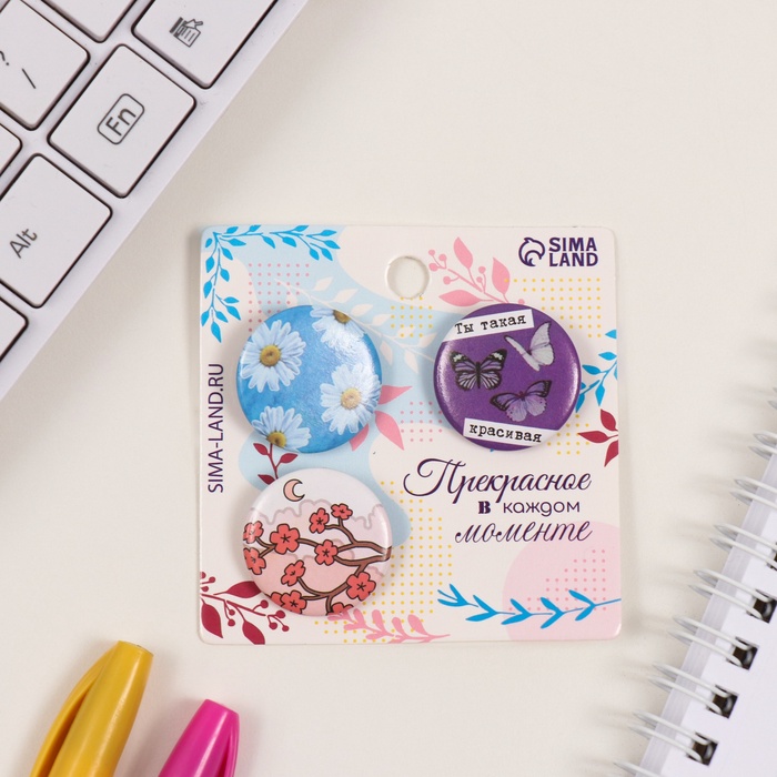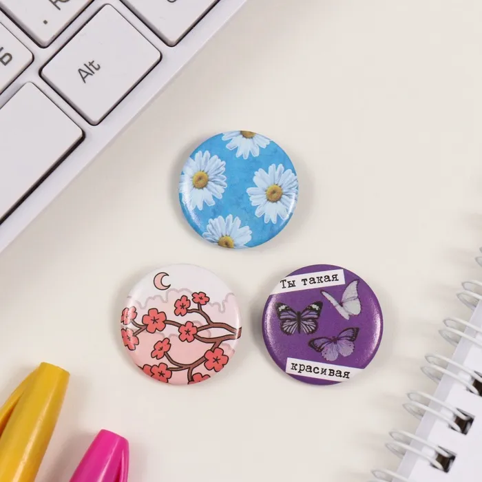 Значки закатные набор 3 шт d=25 мм "Ты такая красивая" 7х7 см — Характеристики