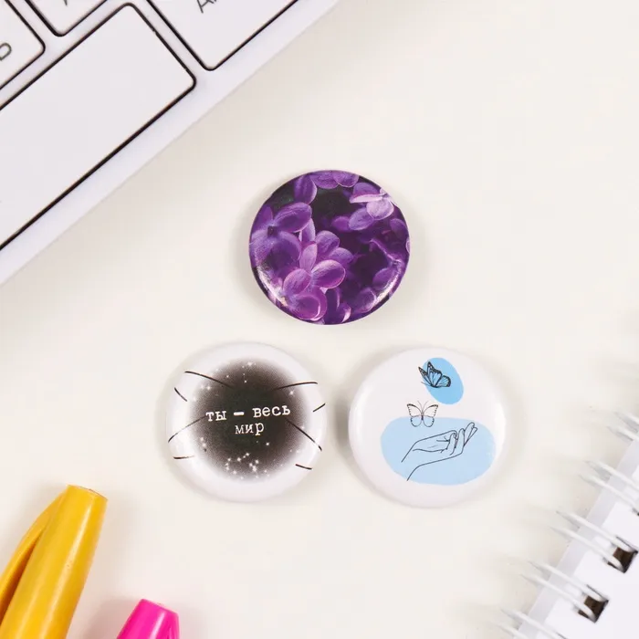 Значки закатные набор 3 шт d=25 мм "Ты - весь мир" 7х7 см — Характеристики
