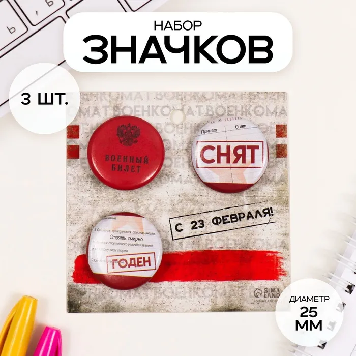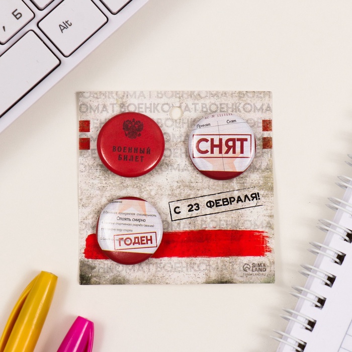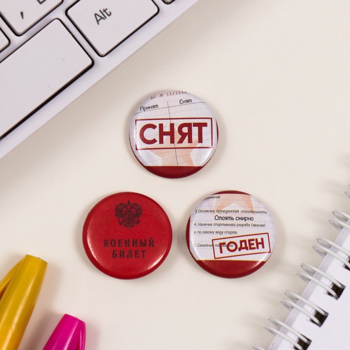 Значки закатные набор 3 шт d=25 мм "Военный билет" 7х7 см — Характеристики