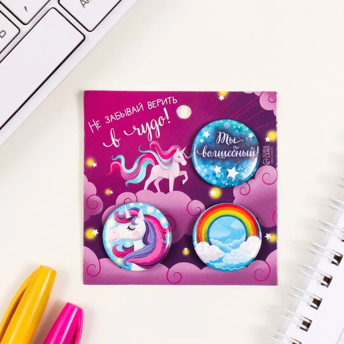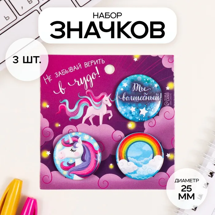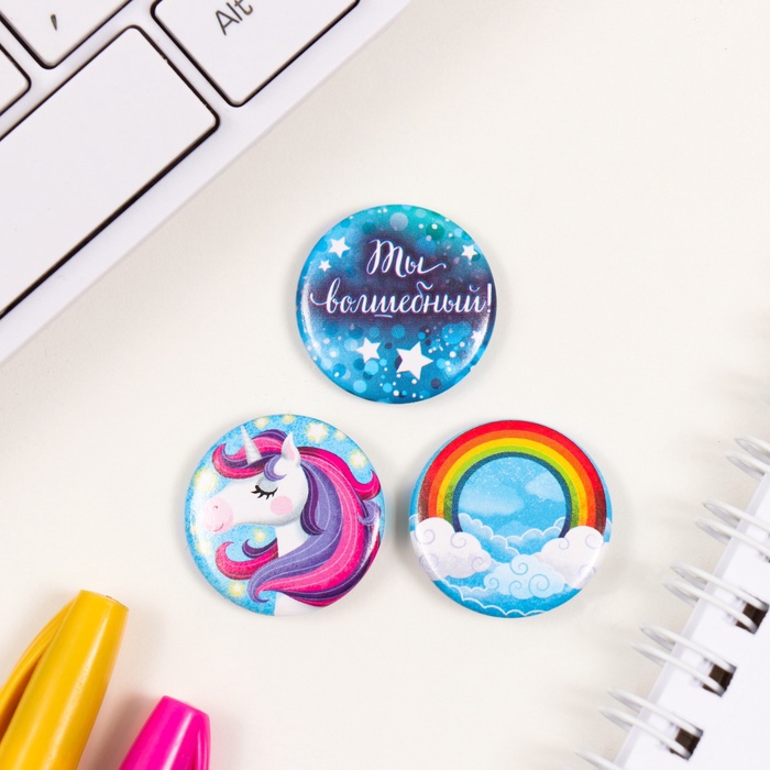 Значки закатные набор 3 шт d=25 мм "Волшебство" 7х7 см — Характеристики