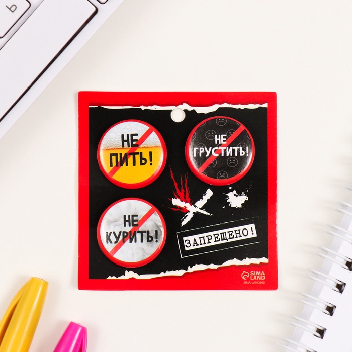 Значки закатные набор 3 шт d=25 мм "Запреты" 7х7 см — Характеристики
