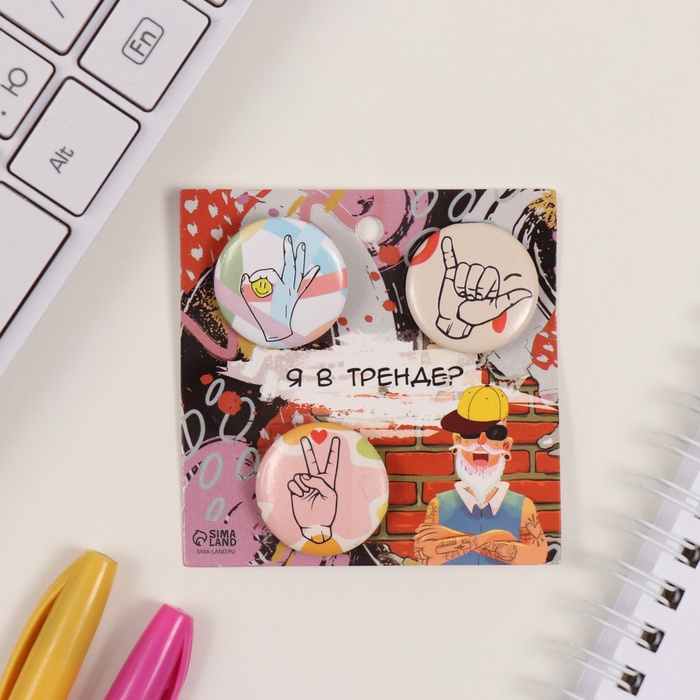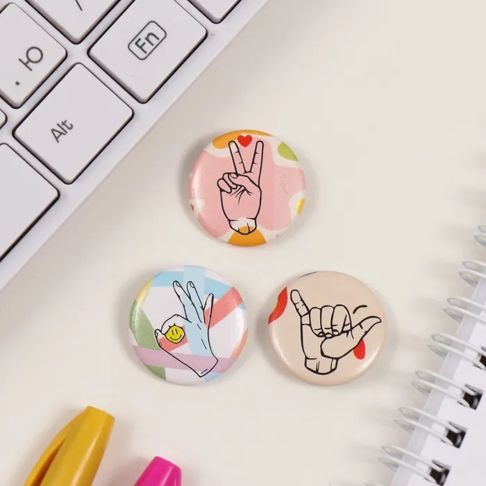 Значки закатные набор 3 шт d=25 мм "Жесты" 7х7 см — Характеристики