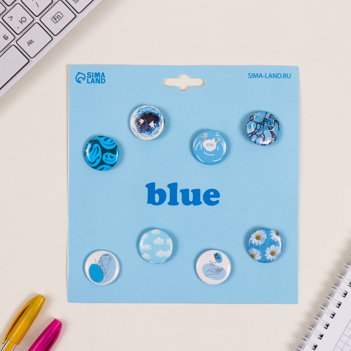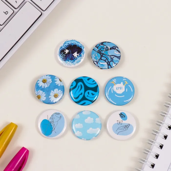 Значки закатные набор 8 шт d=25 мм "Голубые" 16,5х17 см — Характеристики