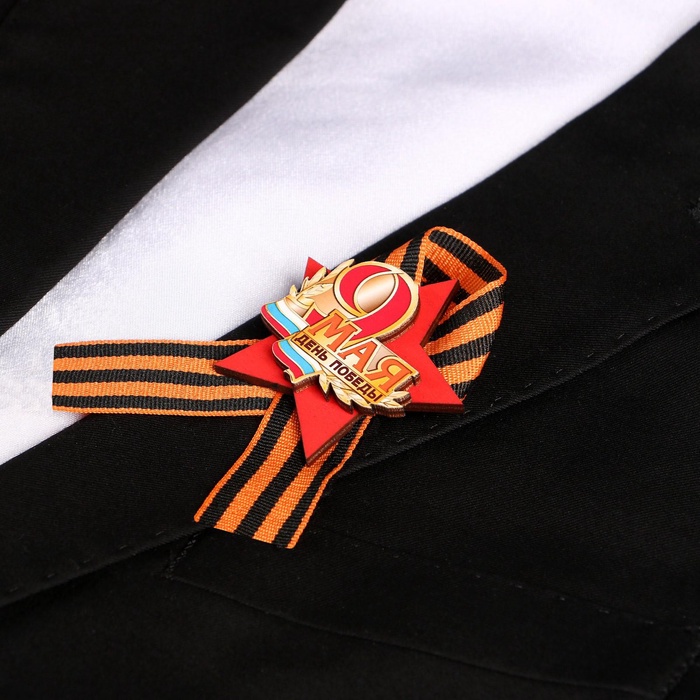 Значок деревянный «9 Мая. С Днём Победы!», с георгиевской лентой — Характеристики