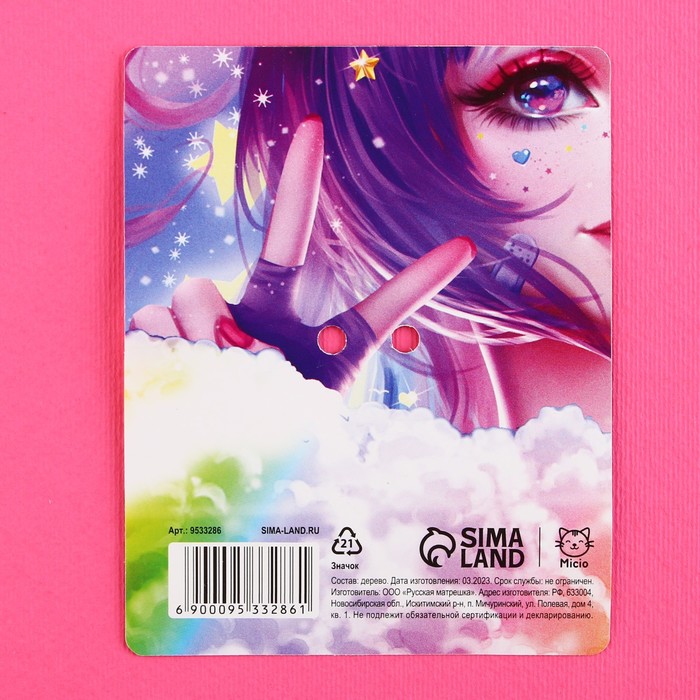 Значок деревянный «Девочка единорог», аниме, 2,6 х 3,3 см - яркий элемент, который порадует любого.