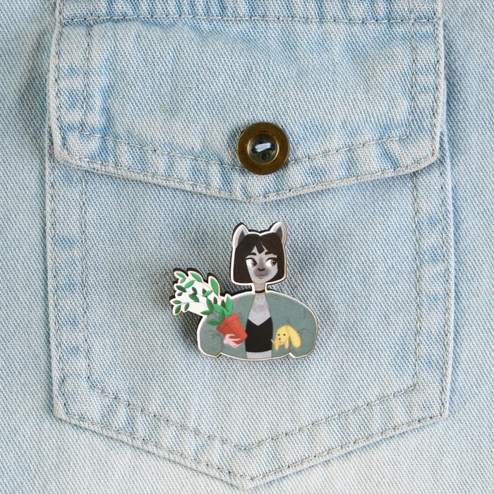 Значок - пин лёгкий и не оттягивает изделие. Рисунок нанесен с помощью УФ-печати, благодаря этому значок имеет четкое изображение и глянцевую поверхность. Значок устойчив к царапинам, не выгорает на солнце. Крепление значка - булавка.