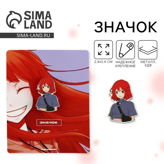 Значок деревянный «Рыжая девушка», аниме, 2,4 х 3,4 см - яркий элемент, который порадует любого.