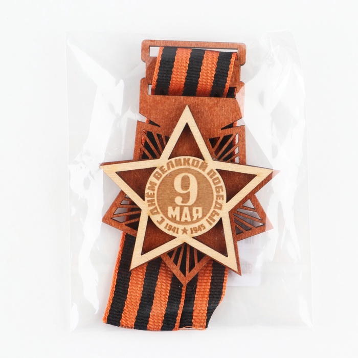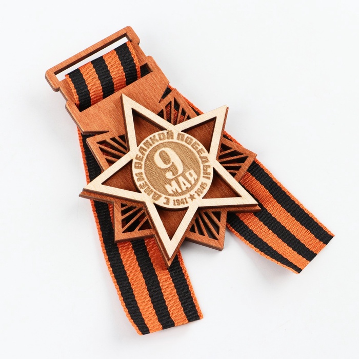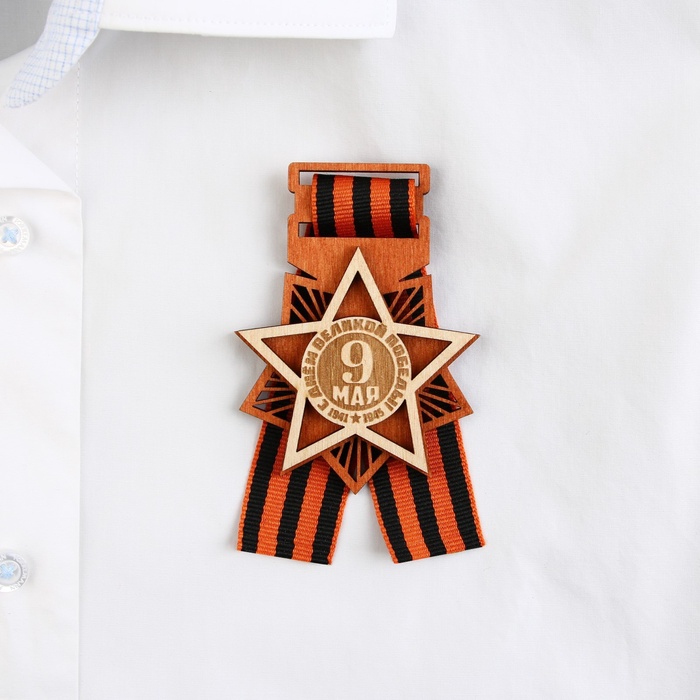 Значок деревянный с георгиевской лентой «9 мая», 6.1×8.2 см