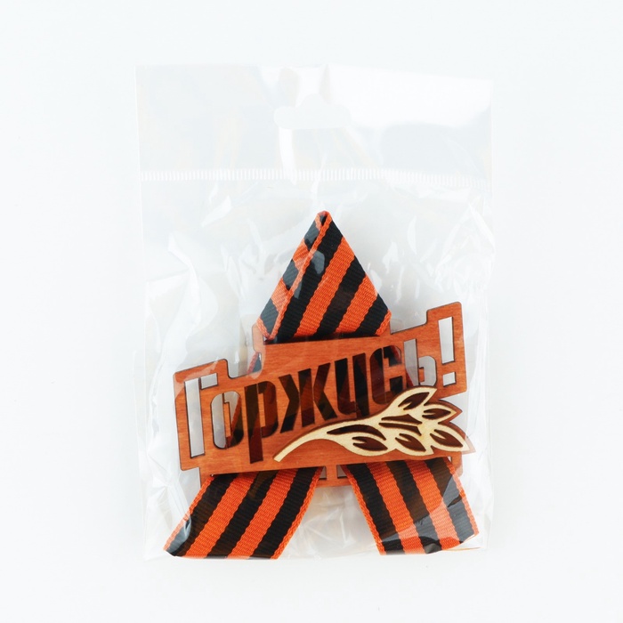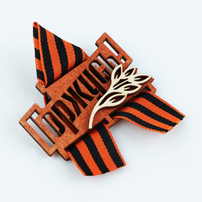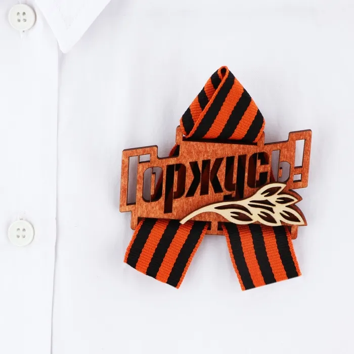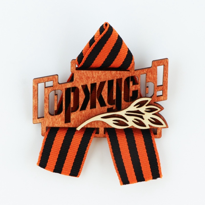 Значок деревянный с георгиевской лентой на 9 мая «Горжусь», 7.5×7.5 см — Характеристики