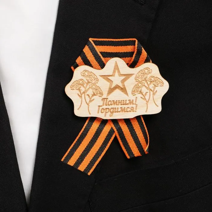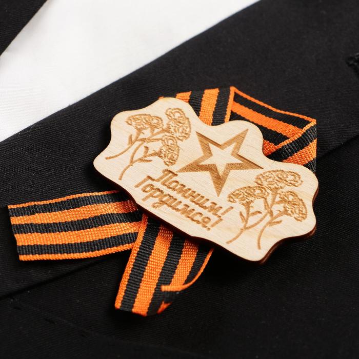 Значок деревянный с георгиевской лентой «Помним! Гордимся! 9 мая» — Характеристики