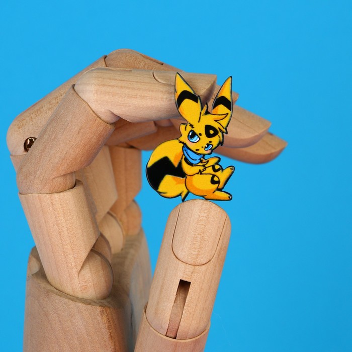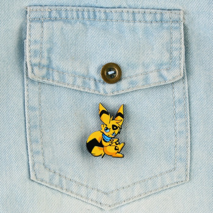 Значок - пин лёгкий и не оттягивает изделие. Рисунок нанесен с помощью УФ-печати, благодаря этому значок имеет четкое изображение и глянцевую поверхность. Значок устойчив к царапинам, не выгорает на солнце. Крепление значка - булавка.