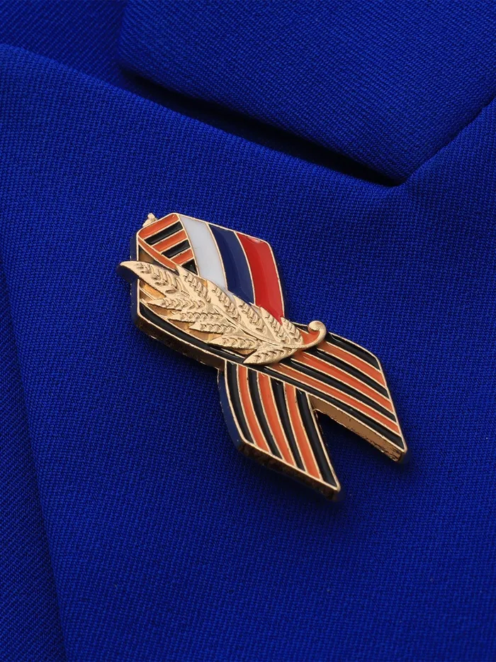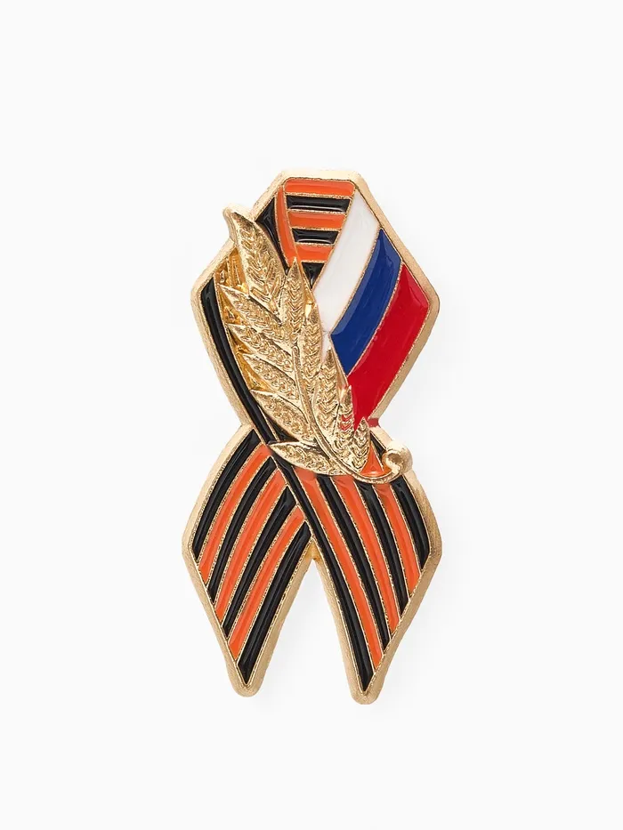 Значок «Георгиевская лента» с флагом России, цветной в золоте — Характеристики