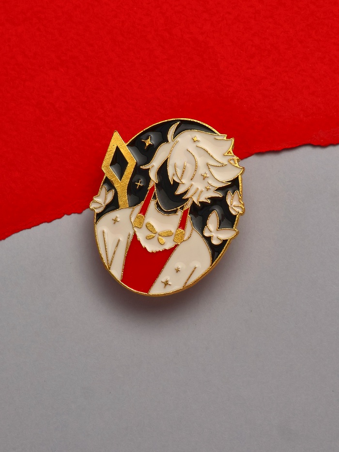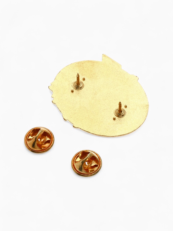 - Элегантность и стиль: золотая фурнитура придаёт значку особый шик и делает его универсальным аксессуаром для любого возраста.