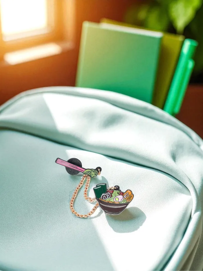 Значок с ярким изображением рамена в золотистой оправе — это стильный и оригинальный аксессуар, который добавит красок и настроения в любой образ. Его насыщенные цвета и аккуратная эмалевая отделка делают каждую деталь блюда живой и аппетитной, вызывая улыбку и ассоциации с японской кухней и культурой.