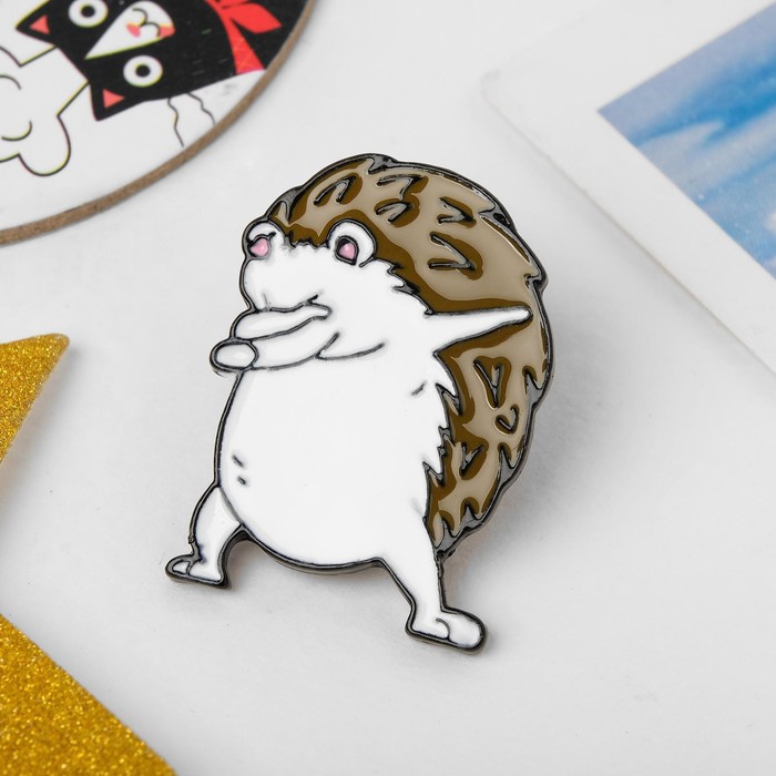 Значок «Ёж» хайп, бело-коричневый в чёрном металле — Характеристики