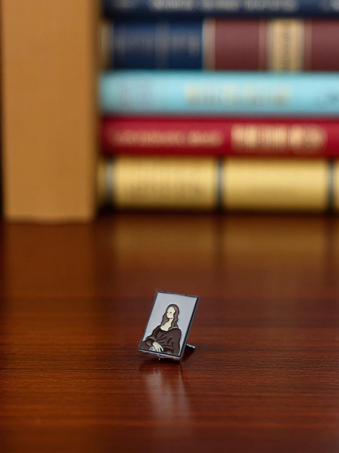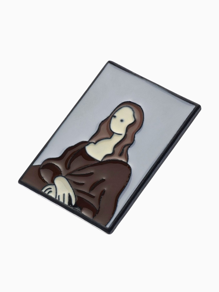 Значок с изображением знаменитой Мона Лизы — это не просто аксессуар, а настоящее произведение искусства, которое украсит любой наряд. Его бело-коричневая палитра в сочетании с чёрным металлом создаёт эффектный контраст, привлекающий внимание и подчеркивающий ваш уникальный стиль.