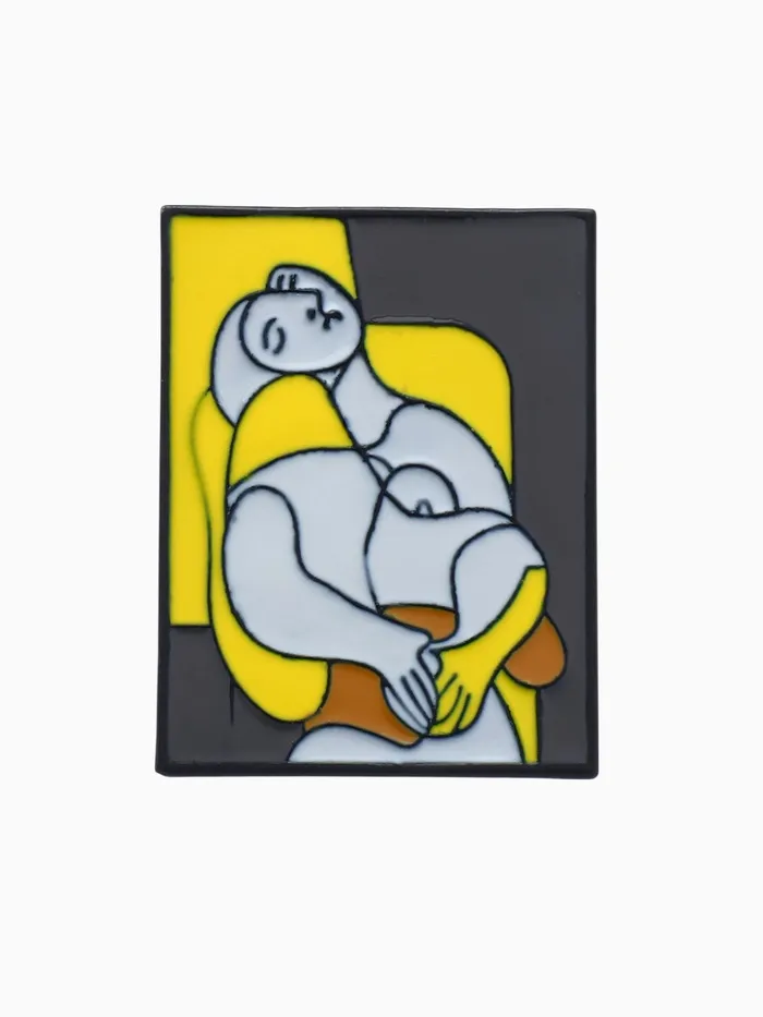 Разноцветные эмалевые вставки, выполненные с использованием силикона, создают живую и выразительную картину, словно отражающую сон или внутренние переживания. Такой дизайн не только радует глаз, но и раскрывает глубину художественного замысла, делая значок маленьким произведением искусства.