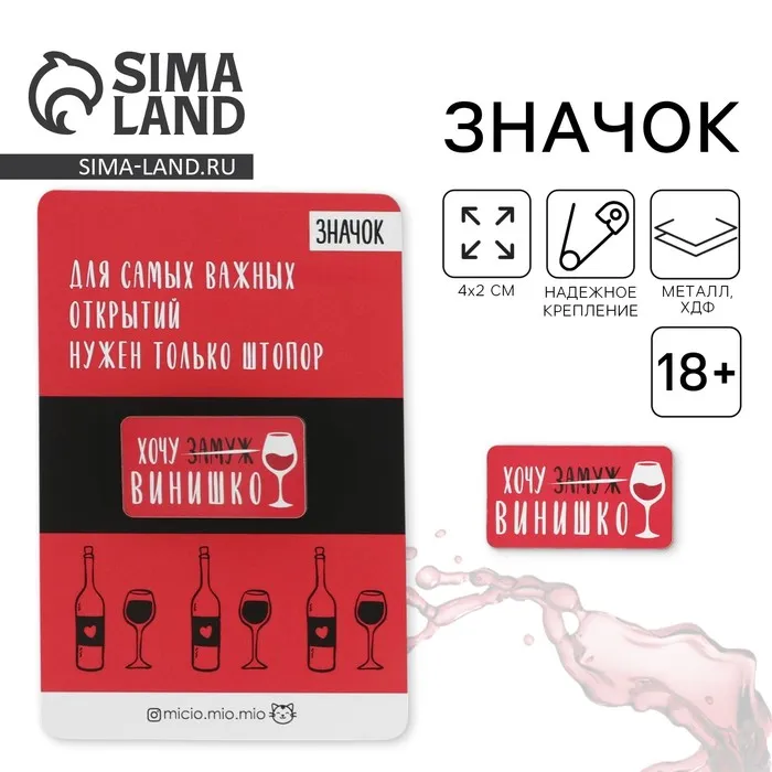 Значок «Хочу винишко», 18+ — Характеристики