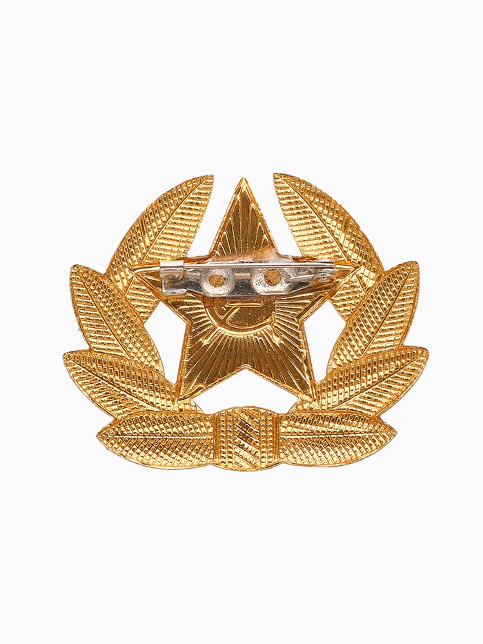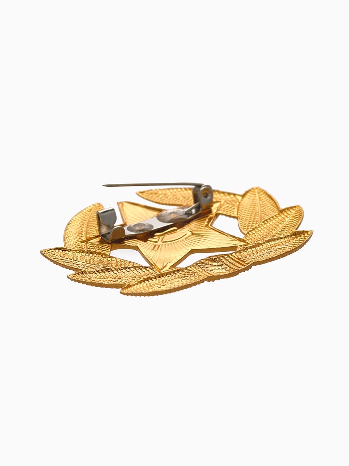 Значок с изображением красной кокарды в золотом обрамлении воплощает дух советской армии и служит символом мужества, чести и патриотизма. Его лаконичный, но выразительный дизайн подчёркивает историческую значимость и придаёт образу особую торжественность.