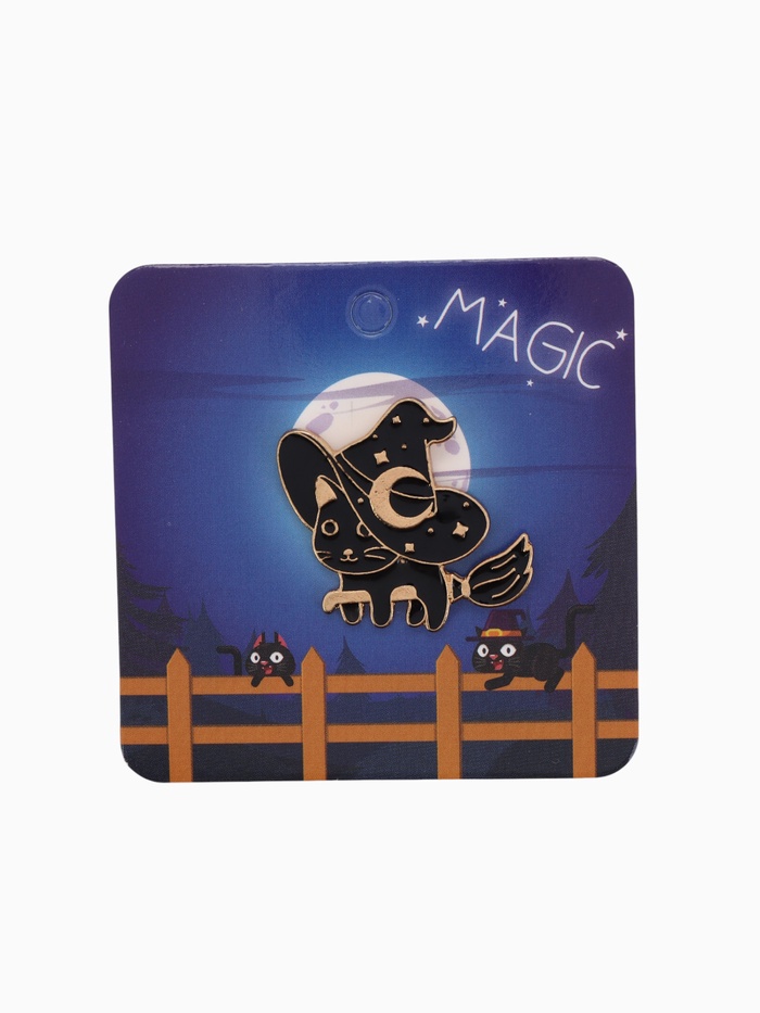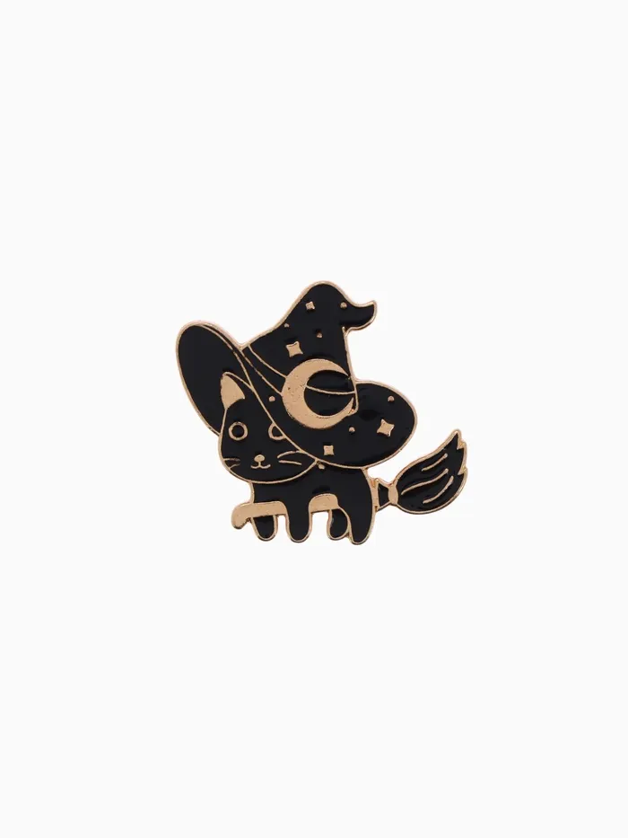 Погрузитесь в мир магии и загадок с уникальным значком, который станет ярким акцентом в вашем образе — значком «Кошка», изображающим ведьму на метле! Этот стильный аксессуар выполнен в чёрном цвете с золотой фурнитурой и идеально подходит для любителей Хэллоуина и всего мистического.