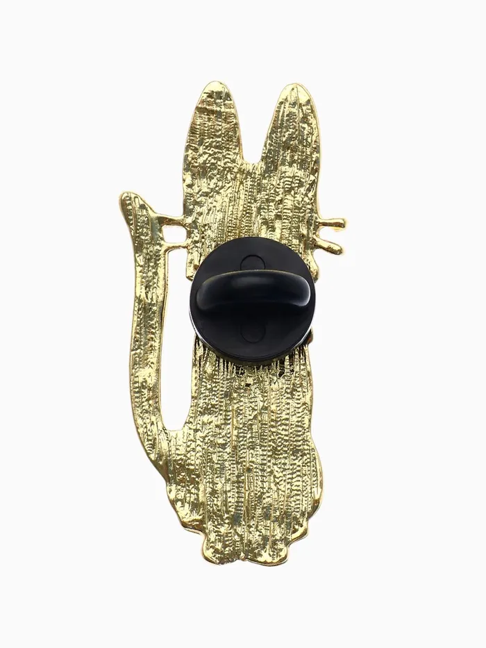 Изящный значок с изображением кота в чёрном цвете и золотой фурнитурой воплощает в себе утонченность и интеллигентность. Его размер 3,3 см позволяет легко носить аксессуар как на одежде, так и на сумках, подчёркивая индивидуальный стиль и любовь к элегантным деталям.