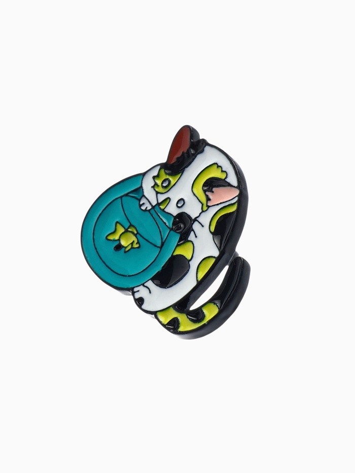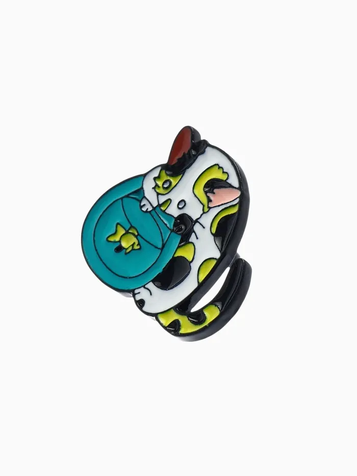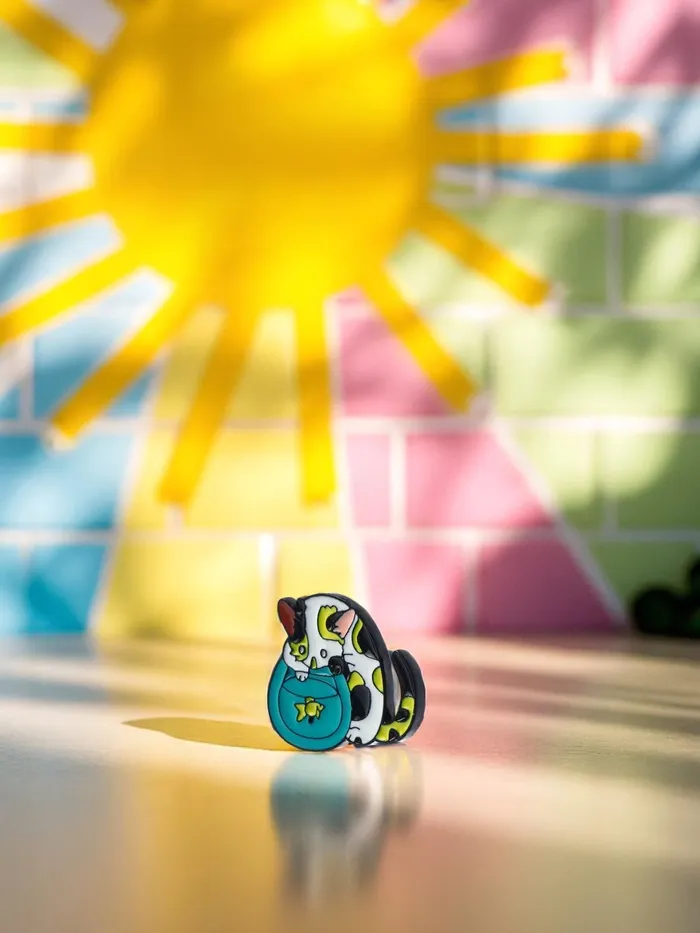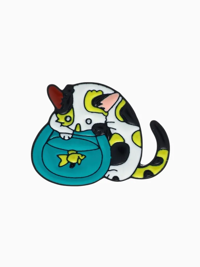 Погрузитесь в мир ярких эмоций и оригинальности с этим удивительным значком, который сочетает в себе очарование кота и магию аквариума. Его размер 2,2 см идеально подходит для того, чтобы стать стильным акцентом на одежде или аксессуарах, а разноцветные детали в сочетании с чёрной металлической основой придают ему особый шарм.