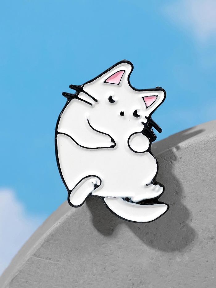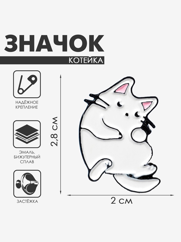 Значок «Котейка», цвет белый в чёрном металле — Характеристики