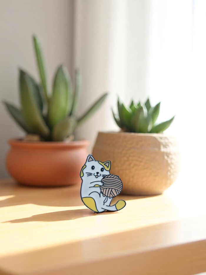 Этот изящный значок с изображением котёнка с клубочком станет нежным акцентом в образе любой девочки. Выполненный из прочного металла с аккуратной эмалевой вставкой в бежевых тонах и оформленный в трендовом черном цвете фурнитуры, он гармонично сочетает в себе стиль и практичность.