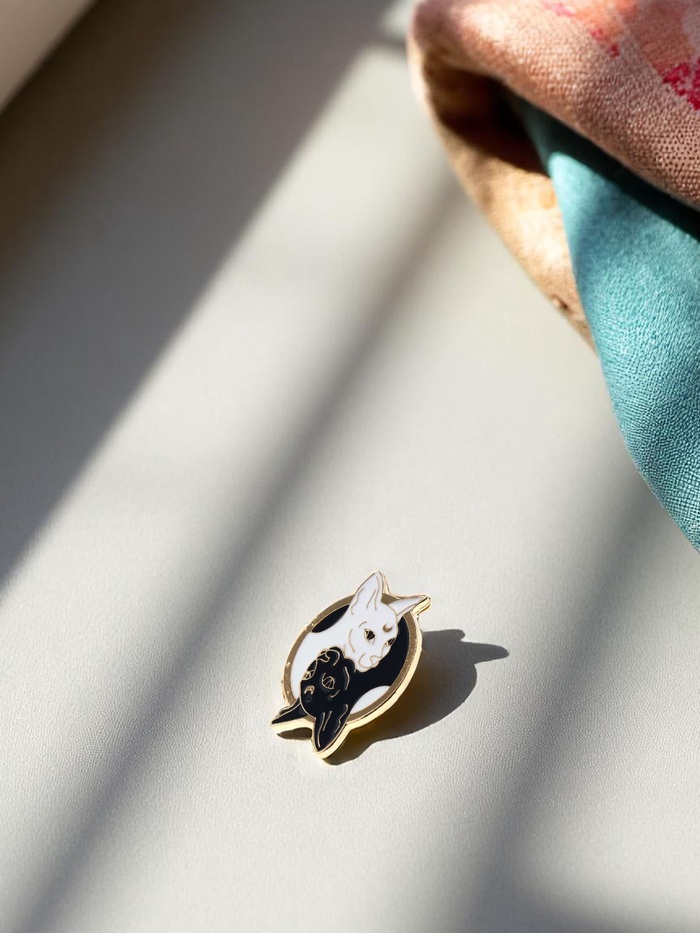 Значок с изображением котов, символизирующих день и ночь, — это стильный аксессуар, который подчеркнёт вашу индивидуальность и добавит изюминку в любой наряд. Выполненный в чёрно-белых тонах с золотистой фурнитурой, этот значок длиной 3 см станет отличным дополнением для женщин и девушек, которые ценят уникальные детали в своём образе.