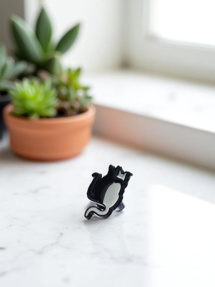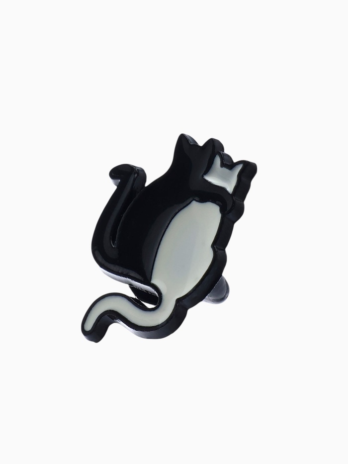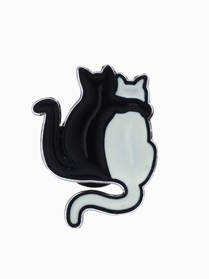 Миниатюрный значок с изображением двух котов в объятиях — это символ нежности и гармонии, воплощённый в изящном чёрно-белом дизайне. Его компактный размер в 2,4 см делает аксессуар универсальным и удобным для повседневного ношения, подчёркивая тонкий вкус и любовь к животным.
