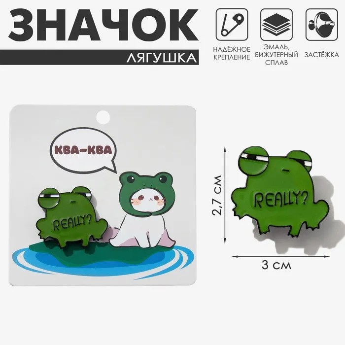 Значок «Лягушка» презрительная, цвет зелёный в чёрном металле — Характеристики